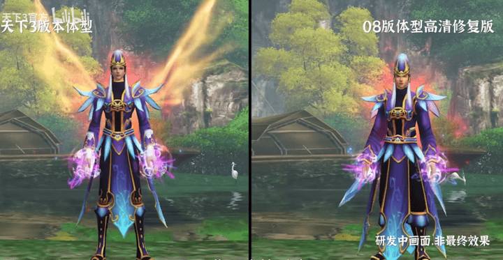 更重要的是,游戏在「对味儿」与「与时俱进」之间找到了平衡。角色模型没有采用后续版本的网红脸,而是还原2008年初版的脸型与体型。比如UI保持水墨风韵,装备模具、四色炼化、灵兽骑术等经典元素悉数回归。