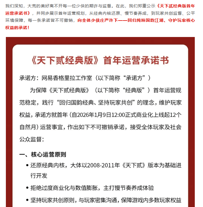 我们有理由相信,在这种玩家与官方深度绑定、共同「开发」的情况下,《天下贰经典版》将逐渐变成开发组和老玩家们都想要的样子。我们选择的不仅是一个游戏,更是一片能卸下现实铠甲的缓冲地,一个能与旧日挚友把酒言欢的社交圈,一个相信努力与智慧能有回响的公平江湖。