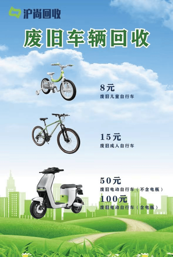 旧车别浪费,当场就能换钱!价格透明公道:童车8元/辆、成人自行车15元/辆、无电瓶电动自行车50元/辆、有电瓶电动自行车100元/辆;僵尸车回收价格以现场展板为准,轻松盘活闲置~
