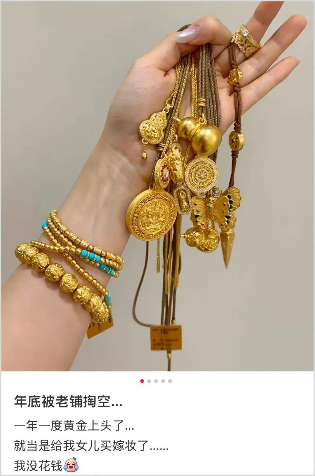 站在圈外人的角度,买那么贵的黄金属于把钱花在刀把上。但对于圈内玩家来说,那些精美的首饰戴上是低调的奢华,放进保险箱是稳健的资产,传给下一代是沉甸甸的念想。一份钱买到三份满足,这性价比算盘一打,很多人就觉得——值了。