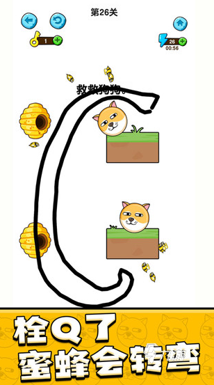 画面精美,狗狗角色超级可爱,设计简洁明了,让人一看就懂。游戏里有很多精心设计的关卡,每一关都有一只可爱的小狗狗等着大家去救它。在游戏里面我们可以发挥你的想象力,画出各种各样的线条,找到合适的方法来抵挡蜜蜂的攻击,这不仅要靠大家的逻辑思维能力,还要靠我们的想象力,给大家带来全新的游戏体验。关卡比较多,而且自由选择,随机性强。