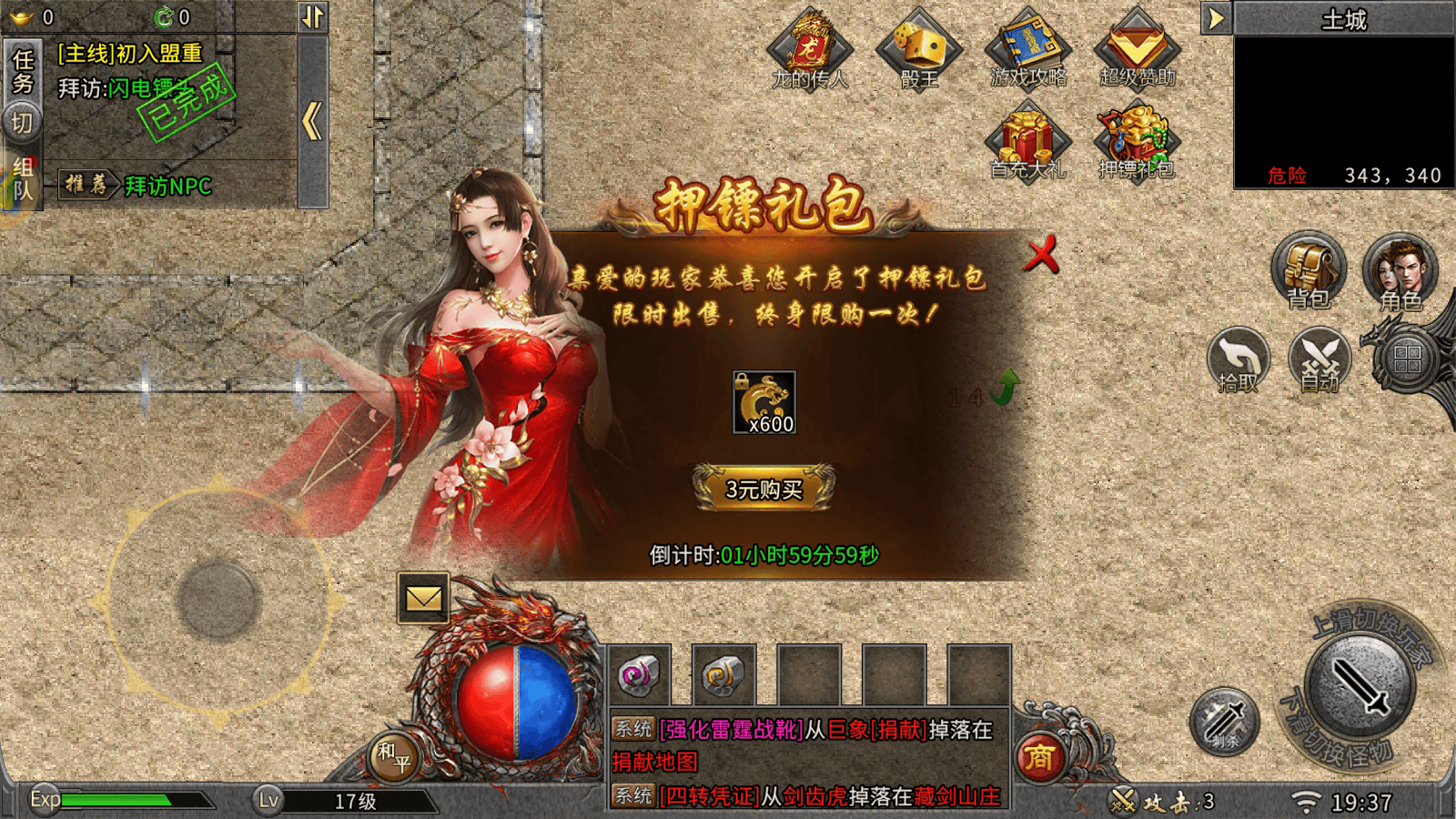 ✅押镖礼包:仅需 3 元即可购买 600 灵符,终身限购一次,性价比拉满,新服必入