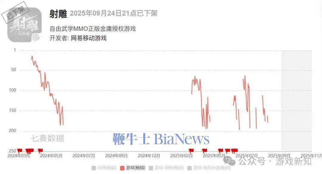 可惜到底无力回天,最终《射雕》运营了一年多就停运了,仅在上线之初短暂进入过iOS畅销榜TOP50。